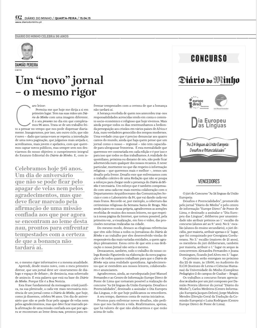 Winner of the Writing Competition “As 24 Línguas da União Europeia: Desafios e Potencialidades” 2015
